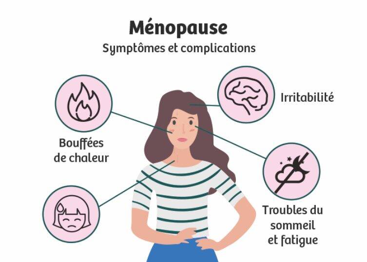 La production de progestérone et d'œstrogènes diminue, entraînant divers symptômes d'intensité variable, tels que les bouffées de chaleur, la prise de poids, les troubles du sommeil et d'autres inconforts. Ces manifestations peuvent persister durant plusieurs années, générant parfois frustration, irritabilité et une tendance à la déprime.